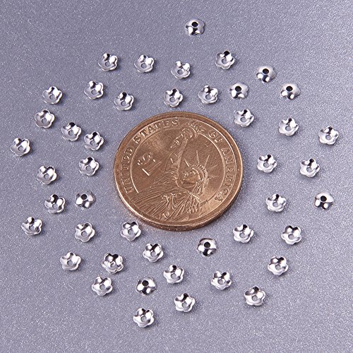 PandaHall 10g 340PCS Coppette Copriperla Perline Distanziatori in Ottone Forma Fiore Colore Argento, Accessori per Creazione di Gioielli, Circa 4 mm di Diametro, Foro: 1.2 mm