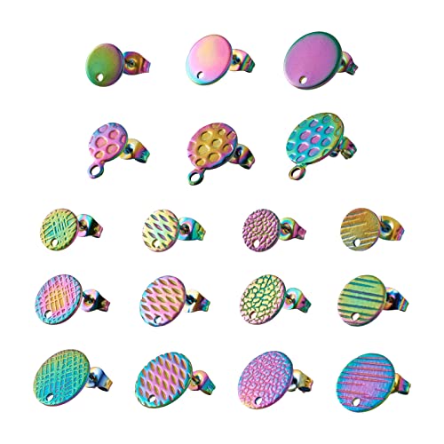 Design unico: l'orecchino di forma rotonda piatta è piccolo e delicato. L'orecchino a perno di colore arcobaleno ha una superficie di trama diversa, linee di macchie, grana di ananas, grana croce, è unico e attraente.