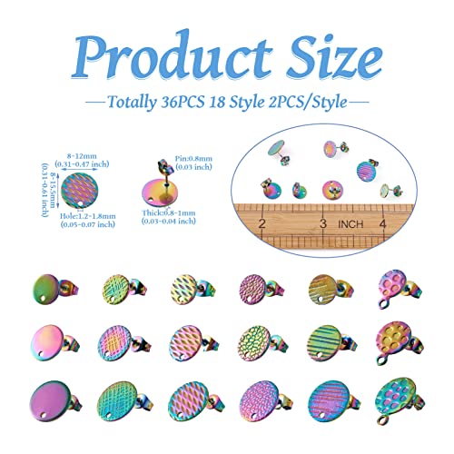 PandaHall 36pcs piatto rotondo orecchini a perno risultati 304 acciaio inossidabile strutturato orecchini a bottone con retro per orecchini pendenti creazione di gioielli