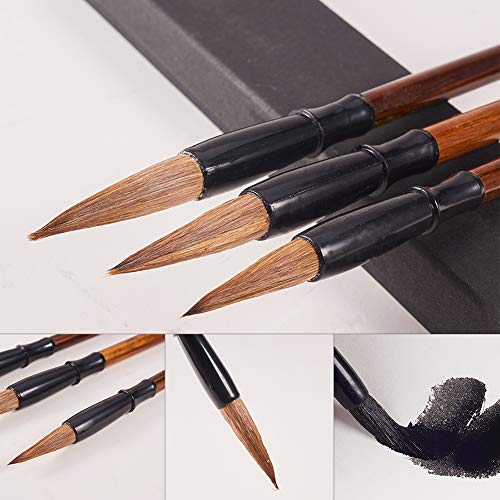 PandaHall 3pcs 1 Set 3 Dimensioni Spazzole di Calligrafia Cinese la Pittura della Calligrafia Disegno Pennello Penna Pennello Terra di Siena per la Produzione di Oggetti per la Pittura