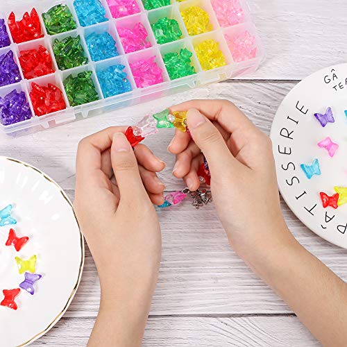 PandaHall 400pcs 8 Colori Farfalla Perline acriliche Distanziatori Animali Trasparenti Charms Ciondolo per Collana Braccialetto Creazione Gioielli