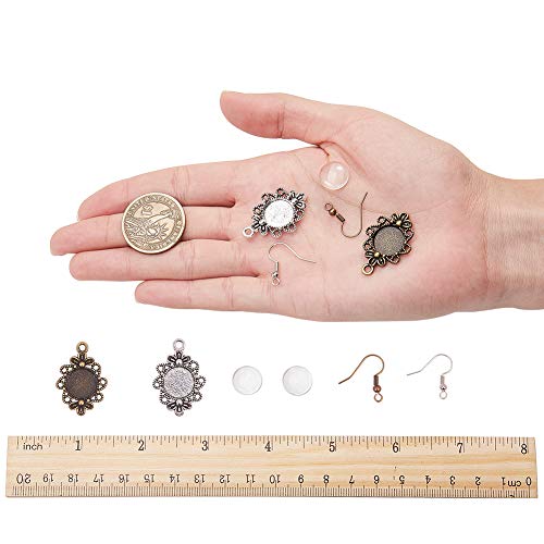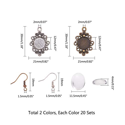 PandaHall 40pcs 2 Colori Gancio per Orecchini in Ottone Tibetano Orecchini in Lega tibetana impostazioni cabochon Pad Fiore con 40pcs 12mm cabochon Trasparenti per orecchino Fai da Te Fare Accessori