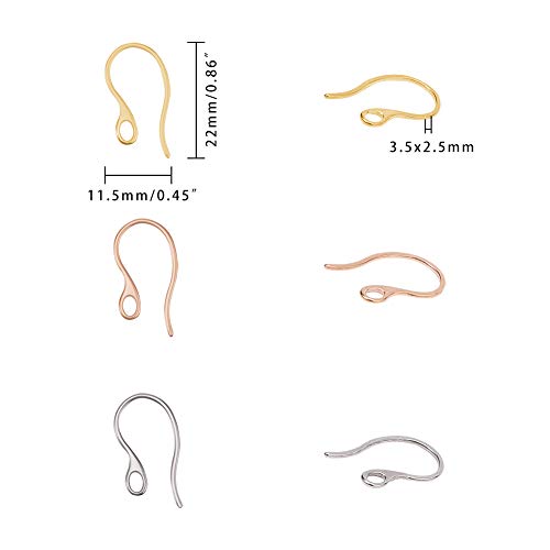 PH PandaHall 45pcs 3 colori ganci per orecchini in acciaio inossidabile filo per orecchio con passante per orecchino fai-da-te creazione di gioielli