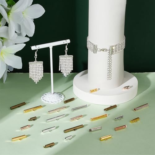PH PandaHall 480pcs 4 Colori Slider End Clasps Tubes Slider End Caps Tubi Terminators Slide Tube End Bar per Seed Bead Multi-Strand Collana Bracciale Creazione di Gioielli (10/13/16/20/25/30mm)