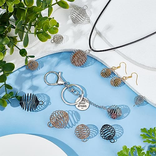 PH PandaHall 54Pz 3 Colori Ciondoli A Gabbia A Spirale con Perline 3 Dimensioni Supporto di Cristallo con Supporto per Pietra A Cerchio Pendenti A Gabbia per Collana per Creazione Gioielli Fai Da Te