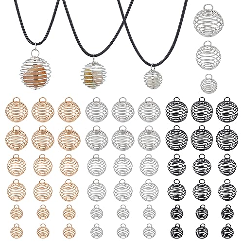 Cosa otterrai: riceverai 54 ciondolo a forma di gabbia di perline a spirale in 3 colori e 3 misure: 17/0.6'', 24/0.9'', 28/1.1''. E 3 colori che otterrai: nero, oro e argento. Abbastanza colori e dimensioni per soddisfare le tue esigenze quotidiane.