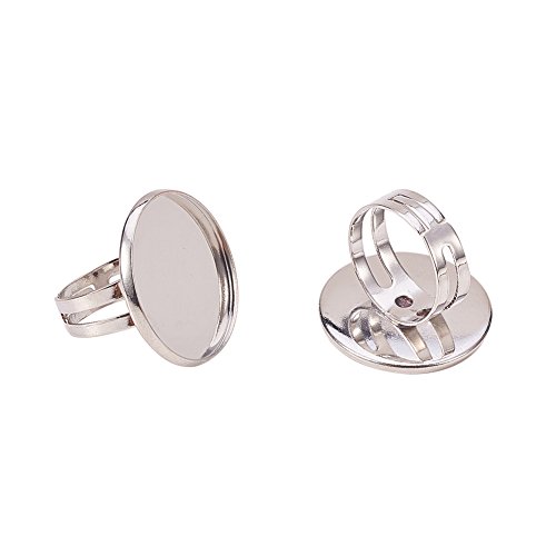 PandaHall 5PCS Basi Anelli Base Componenti di Anello Registrabile per Anelli Fai da Te, Piatto Rotondo, Platino, 17mm, Vassoio: 23mm