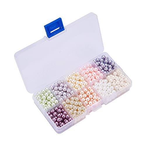 PH PandaHall 600PCS Perline Vetro Perla Rotonde Perla Vetro Perline Colorate 6mm di Diametro 10 Colori 60PCS/ Scompartimento Multicolore