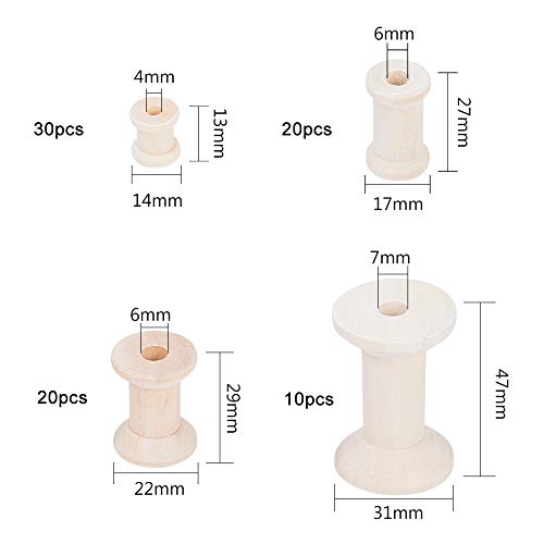 PH PandaHall 80pz 4 Taglie Bobine di Legno Bobine di Filo di Legno Bobina Vuota Legno Rocchetti Legno Bobine di Tessitura di Filo Naturale per Corda a Catena Macchine da Ricamo E da Cucire