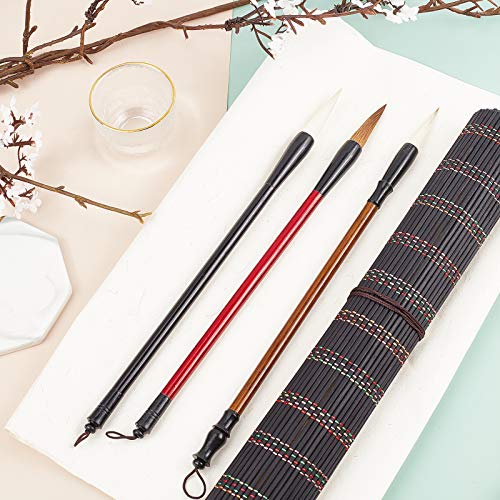 PH PandaHall 9pcs Pennello cinese Pennello calligrafico cinese Pennello da scrittura Kanji Giapponese Sumi Scrittura Pittura Pennelli da disegno e portaspazzole in bambù per studenti e principianti