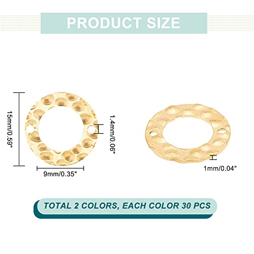 PH PandaHall 60 pz Anelli di Collegamento, Anelli Connettore per Gioielli da 15 mm 304 Maglie con Ciondolo A Forma di Cerchio in Acciaio Inossidabile per Collane, Bracciali Fai-da-Te, Acciaio Inox/Oro