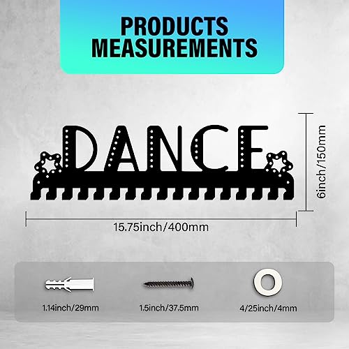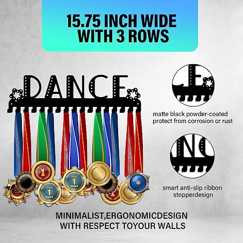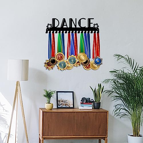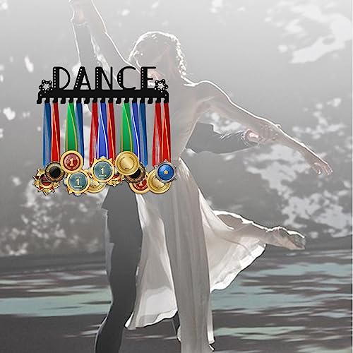 Porta medaglie da ballo: il porta medaglie in metallo nero è progettato in stile danza, stampata con la scritta "DANCE";