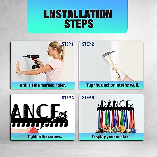 Facile da installare: il gancio della medaglia è preforato, e le viti per l'installazione sono incluse nella confezione, praticare fori sul muro, fissare il porta medaglie e serrare le viti, facile da installare in pochi minuti, è anche comodo da smontare quando non in uso.