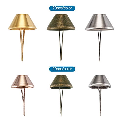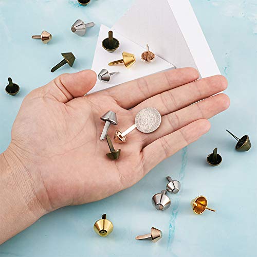 PandaHall, 120 borchie da fondo per zaini e borse, 4 colori, forma conica, borchie in metallo con rivetti, per lavori su pelle e artigianato