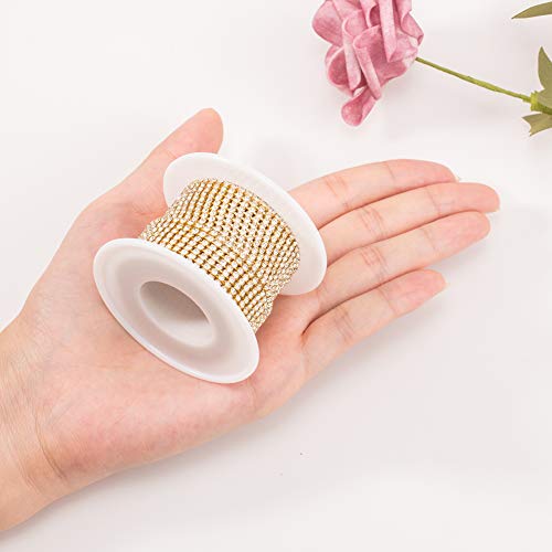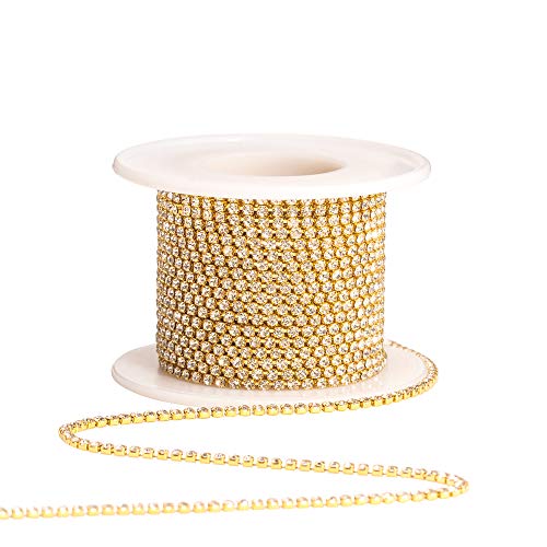 PH PandaHall 10 Cantieri 2mm Catena Strass in Cristallo con Chiusura a Strass Chiara Catena di Artigli per rifilatura Catene Strass in Ottone Mestiere di Cucito Decorazione(Oro e Cristallo)