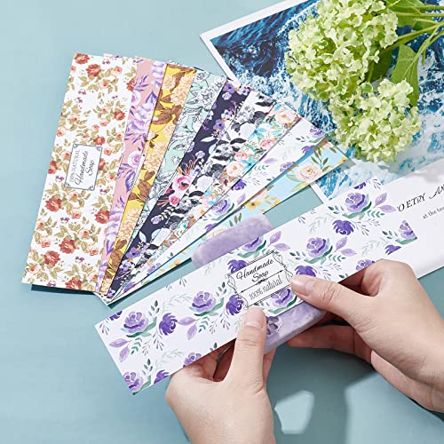 PH PandaHall Carta Da Imballaggio per Sapone 90 pz, 9 Stili Involucro di Sapone Floreale Nastro di Carta per Avvolgere Il Sapone Etichetta di Carta di Sapone Verticale Manicotti di Sapone Copertine