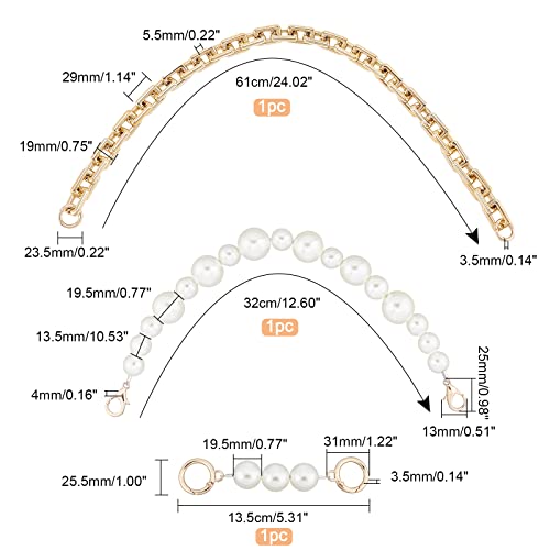 PandaHall Set di Catena per Borsa A 3 fili, 61cm Catena di Cavi Dorata Tracolla per Borsa 2 Catena Perle per Borsa 32/13.5cm Prolunga per Borsa In Pelle Pochette per Borsa