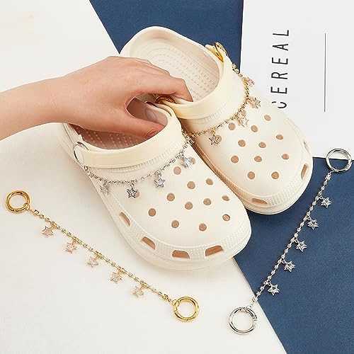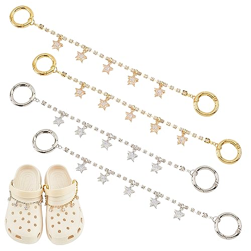 Catene decorative in metallo: il pacchetto include 4 pezzo di catene decorative per scarpe in 2 colori classici: oro e argento, ogni stile 2 pz. I graziosi pendenti a stella si abbinano a strass luccicanti, brillare sotto le luci.