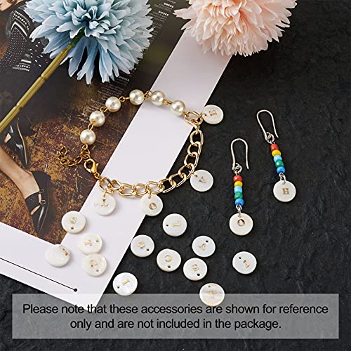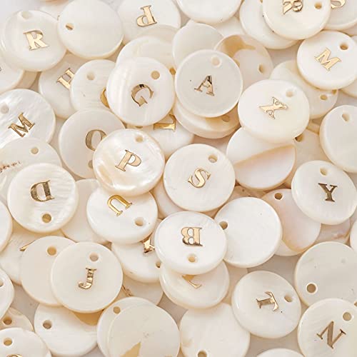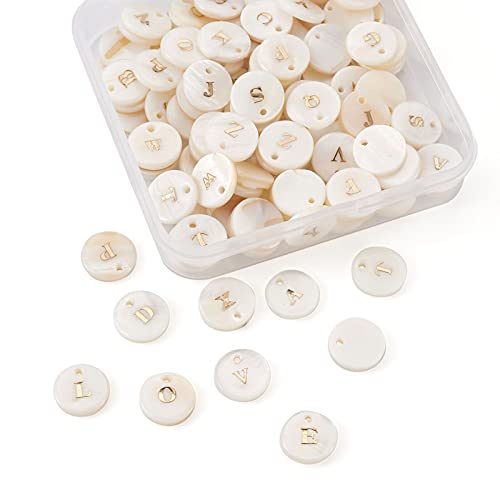PandaHall - Ciondoli rotondi rotondi a forma di conchiglia d'acqua dolce naturale con lettera di blocco dell'oro, 11,5 x 2 mm, per braccialetti e collane, orecchini, creazione di gioielli
