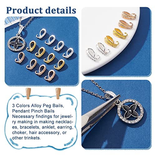 PH PandaHall 150 pz Ciondolo Pinch Bails Pizzico Clip Cauzione Chiusura Lega Peg Bails Ciondola Perlina Ciondolo Connettore per Collana Ciondola Fascino Ciondolo Fai Da Te, Oro/Argento/Oro Chiaro