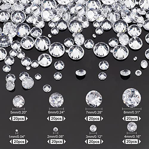 8 taglie CZ Stones: il pacchetto include 160 pezzi di zirconi cubici trasparenti a forma di diamante in 8 dimensioni - diametro: 1 mm, 2mm, 3mm, 4mm, 5mm, 6mm, 7 mm e 8 mm;