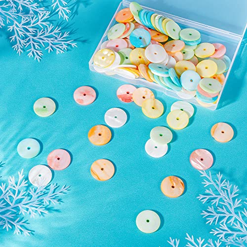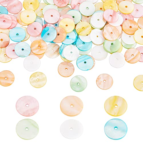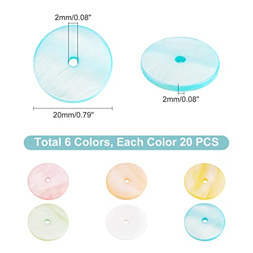 PH PandaHall 6 Colore Perle di Conchiglia Rotonde, 120pz Ciondoli Rotondi per Monete Ciondolo con Conchiglia Piatta Naturale Ciondoli Nautici per Collana Estiva Bracciale Orecchino Decorazioni