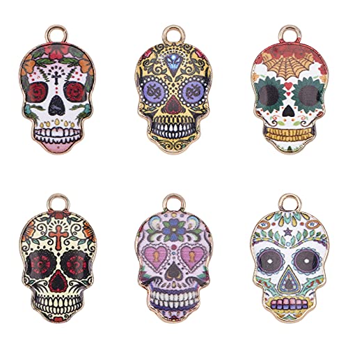 PH PandaHall 6 colore Testa di Teschio Smalto Ciondoli 36 pezzi Halloween Teschio Perline Pendenti Pendenti con Ciondoli per Donna Uomo Collana, Braccialetto, Orecchino Creazione di Gioielli