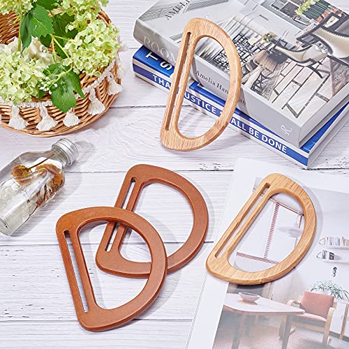 PH PandaHall 4 pz 2 colori Manici Borsa In Legno A Forma di D Maniglia Borsa Maniglia Sostituzione Borsa per Borsa Da Spiaggia Fatta A Mano Borse Manici Borsa Macrame Mercato Borse, 8~10x14 cm