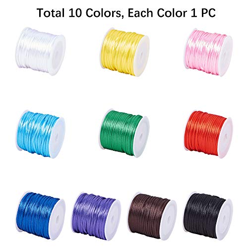 PH PandaHall 10 Colori 2mm Rattail Cord in Nylon e Seta con Cordoncino per Bracciale dell'amicizia, Nodo Cinese, macramè, Finiture, creazione di Gioielli, 100m Totalmente