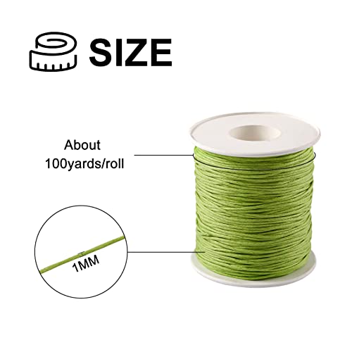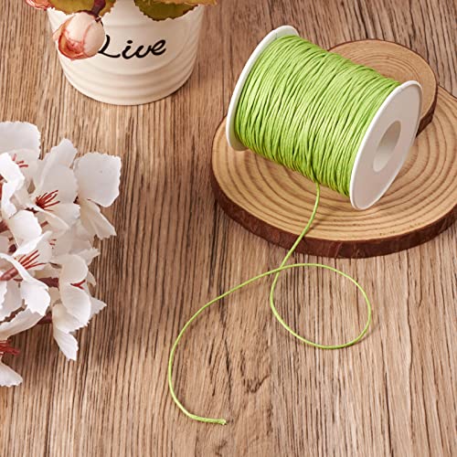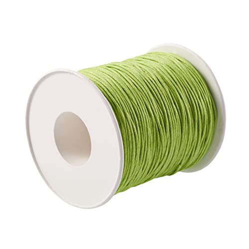 PandaHall, Cordoncino in cotone cerato, 100 m/ rotolo di corda di cotone intrecciato da 1 mm per la creazione di gioielli fai da te (giallo verdognolo)