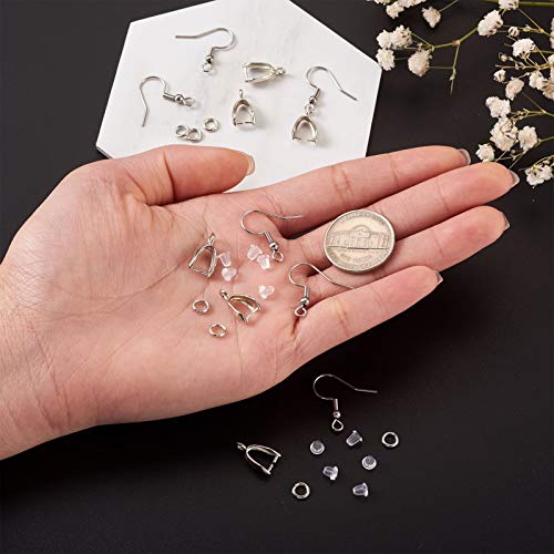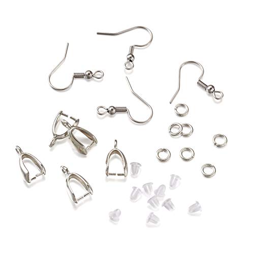 PandaHall 340 kit per la creazione di orecchini con orecchini in acciaio inox argento e ganci per pesci, in ottone, per pizzicare il ghiaccio, anelli di salto e dadi in plastica per gioielli fai da te