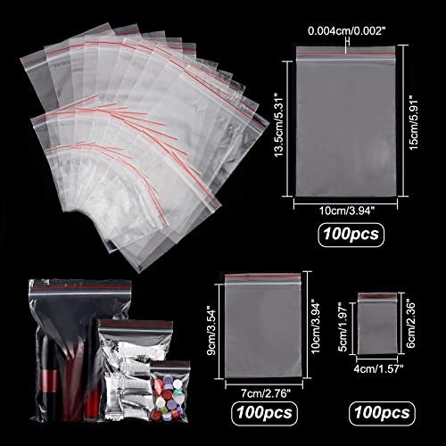 PandaHall Elite 300pcs Bustine OPP cellophane Trasparenti con Chiusura Zip per Perline Biscotto Caramelle, Circa 4-8 cm di Larghezza, 6-12 cm di Lungo, Spessore unilaterale: 0,04 mm