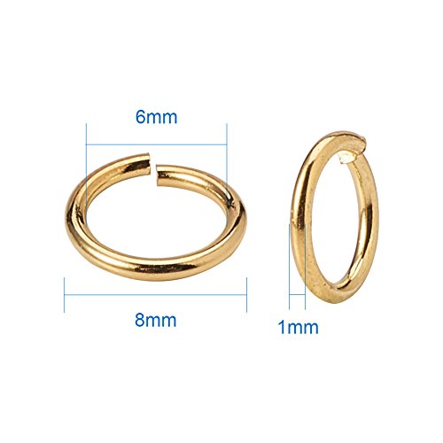 PandaHall Elite 360PCS Anellini Aperti Anellini per Bigiotteria Anelli, Chiusi ma Non-Saldatura, Colore Oro, 8x1mm
