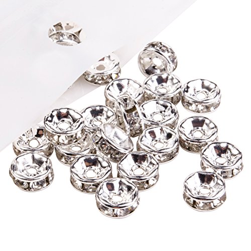 PandaHall Elite 50PCS Perline Vetro Strass Rotonde Perline Distanziatori Ottone Placcate Colore Argento, 6x3mm