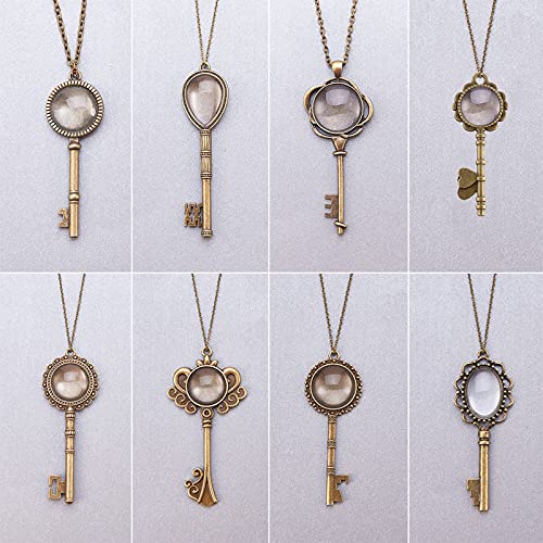 PandaHall Elite 32 Set di Ciondoli a Forma di Chiave, 8 Stili di Vassoi Ciondoli Castone Vuota con Cabochon Vassoi per Ciondoli Chiave Vintage per la Creazione di Gioielli Fai-da-Te