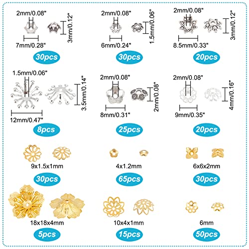 PandaHall Elite Circa 313 Pezzi 12 Stili Tappi Perline in Lega e Ottone Fiore Bead Caps per Fare bigiotteria, Colori Misti