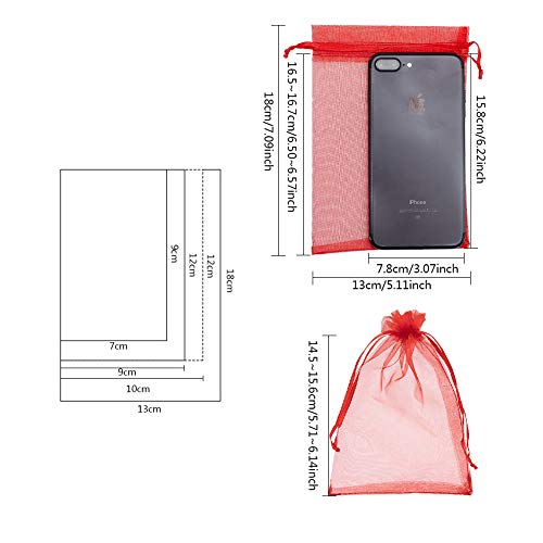 PandaHall Elite 150 Pezzi Sacchetti in Organza con Nastri per Confezione Regalo Fiesta Matrimonio bomboniere Rettangolo Colore Misto 18x13cm, 10 pz/Colore, 150 Pezzi/Set