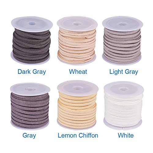 PandaHall Elite 6 Rolls Corda di Faux Suede, Accessori per Creazione Gioielli, Colore Misto, 3x1.5mm, Circa 5m/Roll