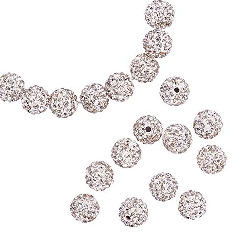 PandaHall Elite 1 Scatola 100PCS 10mm Perline Argilla Disco Ball Perline Distanziatori Rotonde Cristallo Bianco Strass Bracciali Braccialetti