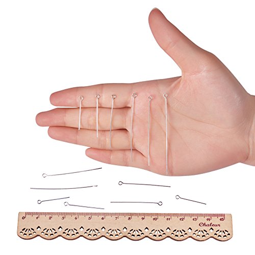 PandaHall Elite 1 Scatola 600PCS Chiodini Occhiello in Ottone per Creazioni di Gioielli Fai da Te, Argento, 24-60x0.7mm, Foro: 2mm, About 600pcs/box