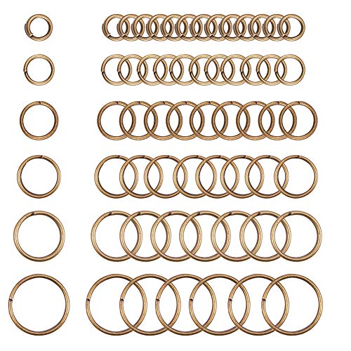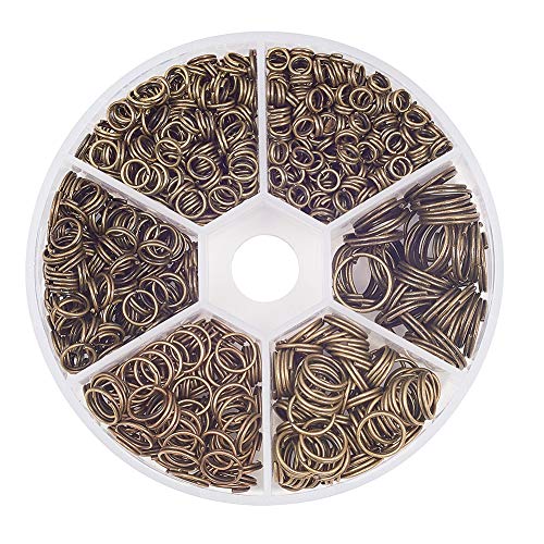PandaHall Elite 1 Scatola Doppi Anellini Aperti Anellini per Bigiotteria, Colore Bronzo Antico, 4-10x1-1.3mm