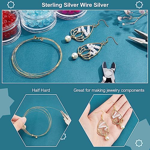 PH PandaHall Filo in Argento Sterling da 2 m, 26 Gauge Half Hard Golden Jewelry Making Wire 0.4mm Round Beading Wire per Crafting Scolpire Bracciale Orecchini Creazione di Gioielli Forniture