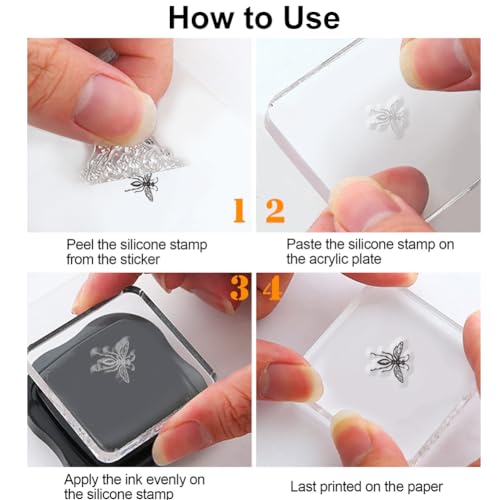 Facile da usare: scegli il timbro trasparente, mettilo su un blocco acrilico, scegli il tampone di inchiostro artigianale a colori, colora il tuo timbro, imprimere il sigillo colorato sulla carta o sulla carta, poi lasciarli asciugare all'aria, si compie un lavoro squisito.