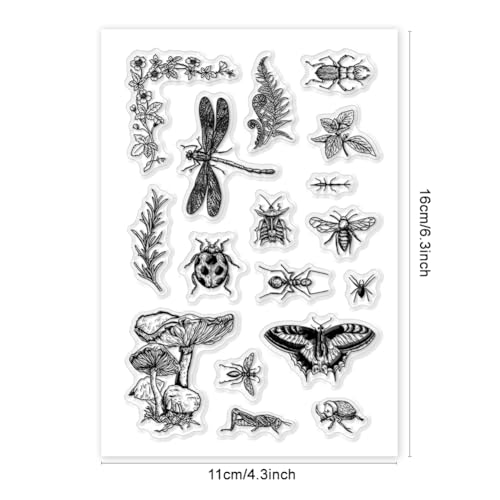 Timbro trasparente: i nostri timbri presentano motivi illustrativi vintage con insetti vegetali, questi timbri trasparenti sono realizzati in silicone resistente, leggero, non facile da rompere o deformare, molto dettagliato e delicato.