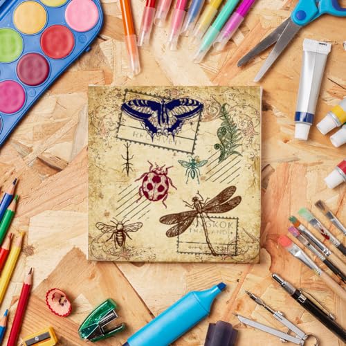 PH PandaHall Illustrazione Degli Insetti Timbri Trasparenti, Timbro In Gomma per Piante Vintage Timbro In Silicone per Sfondo Timbri Trasparenti per La Realizzazione di Cartoline,Fai-Da-Te,16x11cm