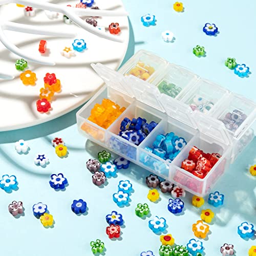 PandaHall Millefiori Lampwork - 325 perline di vetro in 8 colori, per bracciali, collane, orecchini, gioielli, artigianato, foro: 1 mm