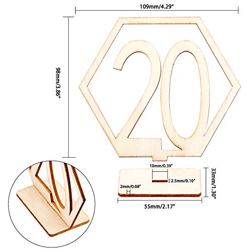 PH PandaHall Numeri da Tavolo in Legno, 1-20 Numeri Segnaposto Matrimonio con Base di Supporto, Supporto da Tavolo Esagonale per Carte da Festa per Decorazioni Compleanno, Feste, Eventi o Catering