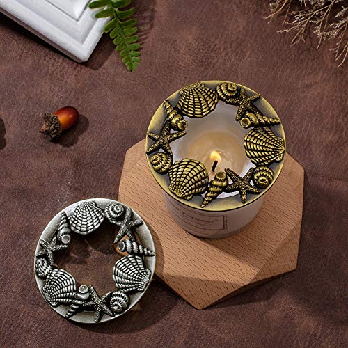 PandaHall 2 Pezzi Conchiglie Candle Jar Topper Candle Topper Shade Jar Coperchio Maniche Ombra - Aiuta la Candela a sciogliersi uniformemente, Diametro 3,19 (Bronzo Antico e Argento Antico)