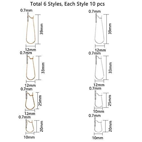PandaHall 80 Pezzi 4 Dimensioni Orecchini a Cerchio in Acciaio Inossidabile, Filo per Orecchini a Gancio per Orecchini Fai da Te, Colore Oro/Acciaio Inossidabile