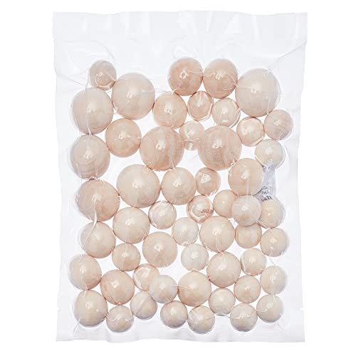 PandaHall 53 Pezzi 3 Dimensioni Perle di Legno tonde Senza Foro Perline di Legno Palline Legno Perline distanziate Allentate per Natale lavoretti Fabbricazione di Gioielli